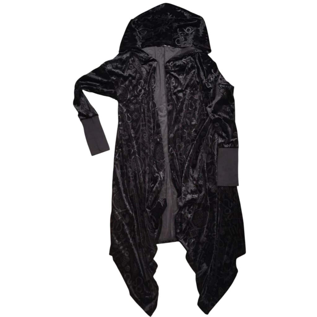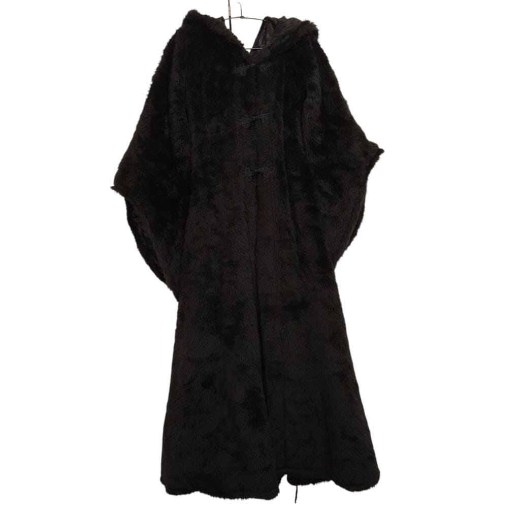 • Musta pitkä karvatakki hupulla
