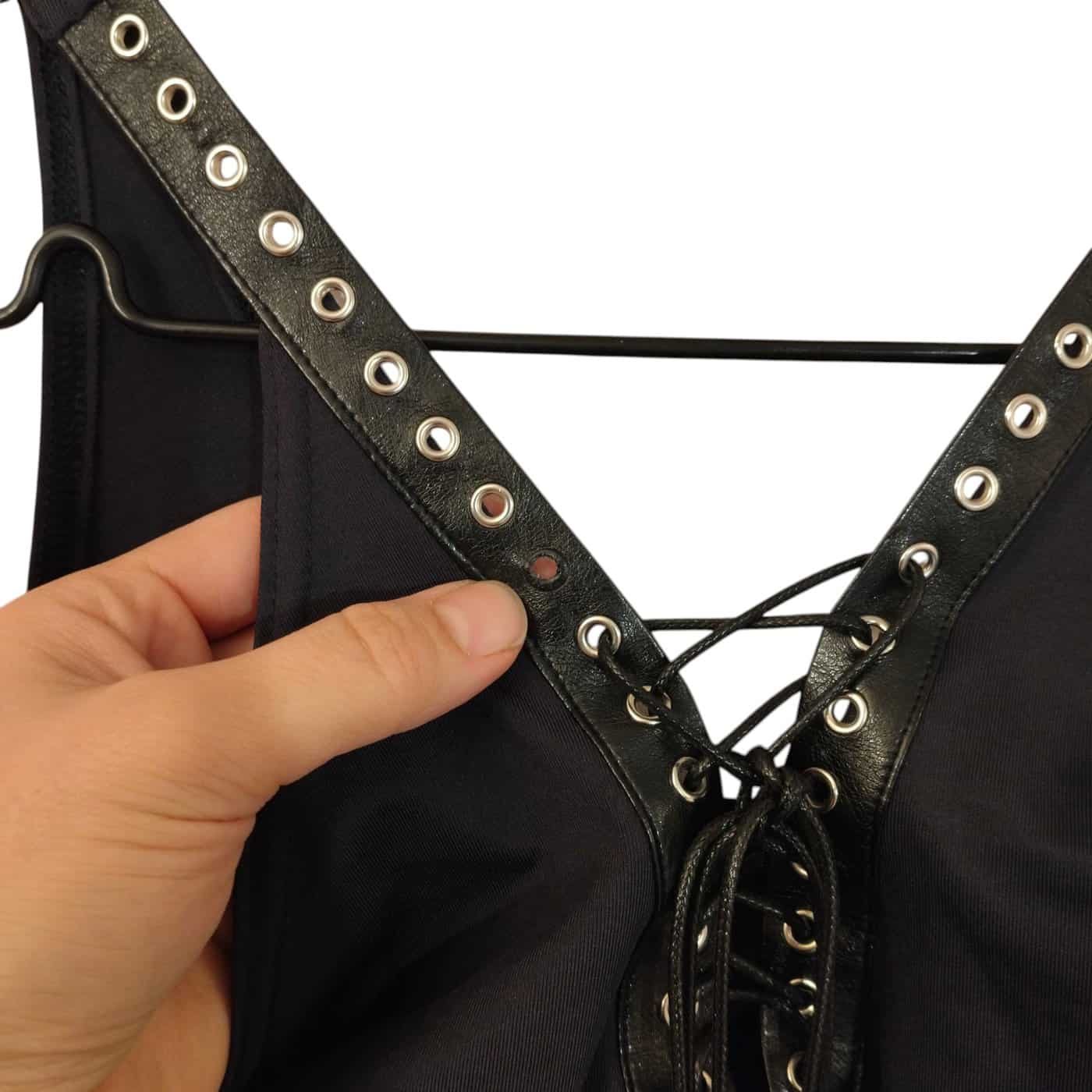 Edessä nyöritys tekonahkasomistein ja sirkoi