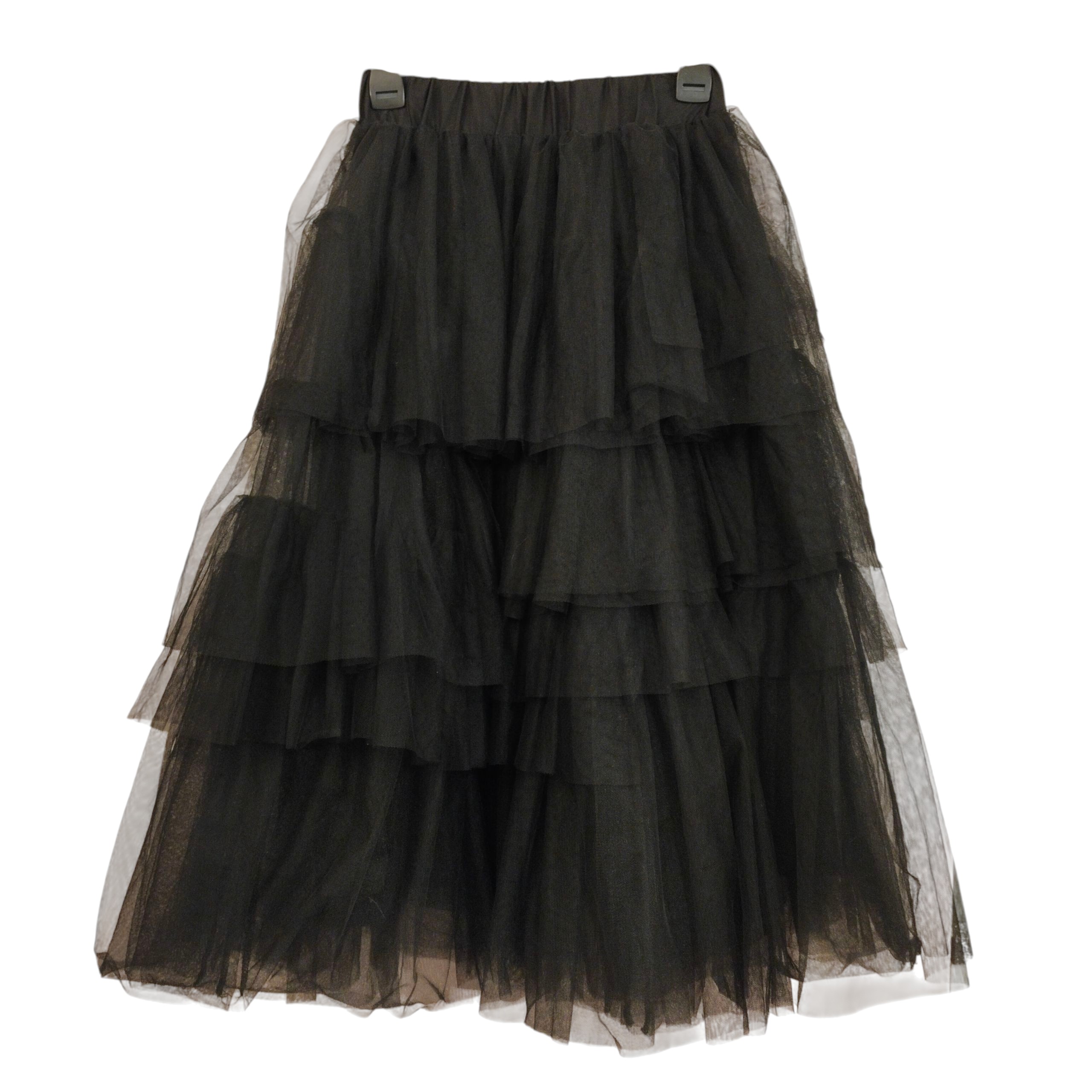 Kokopitkä alushame ja päällä useampi kerros tylliä kerroksittain