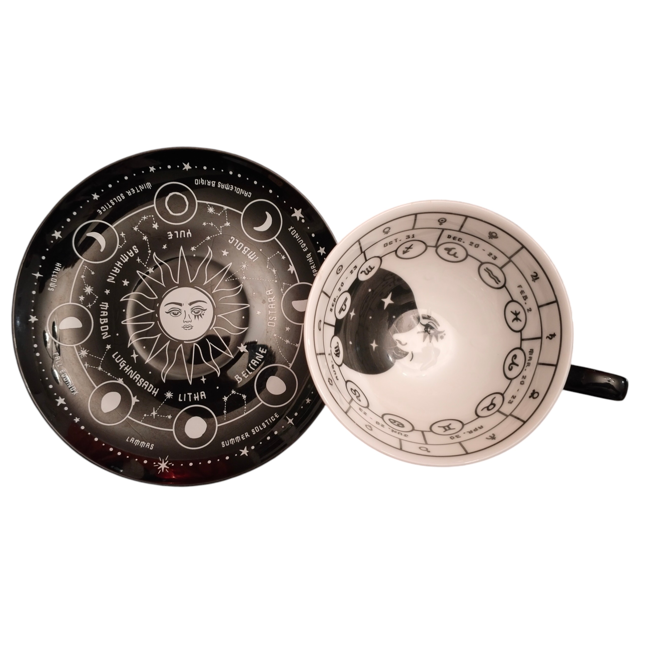 Killstar musta-valkoiset astrologia-henkiset kuppi ja tassi