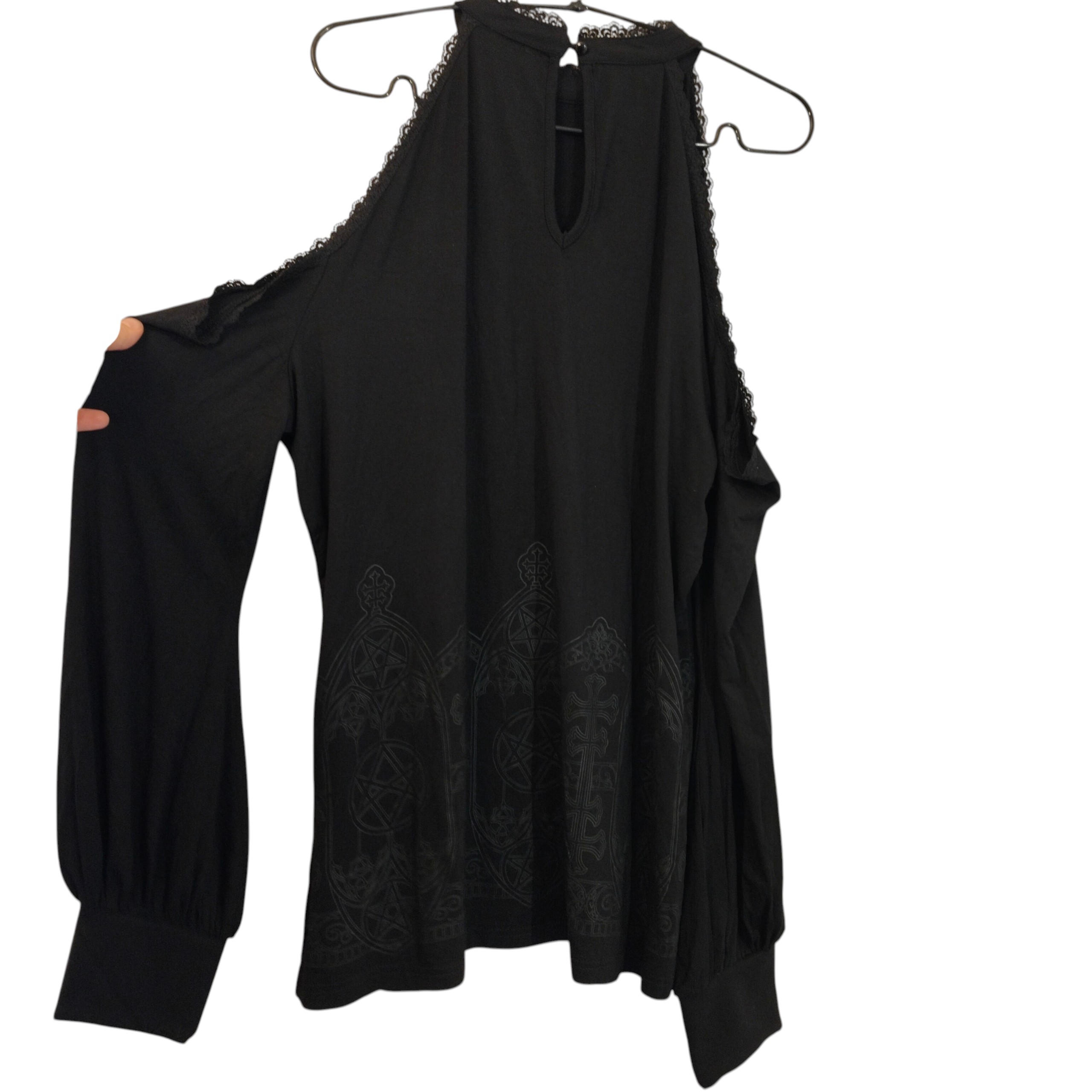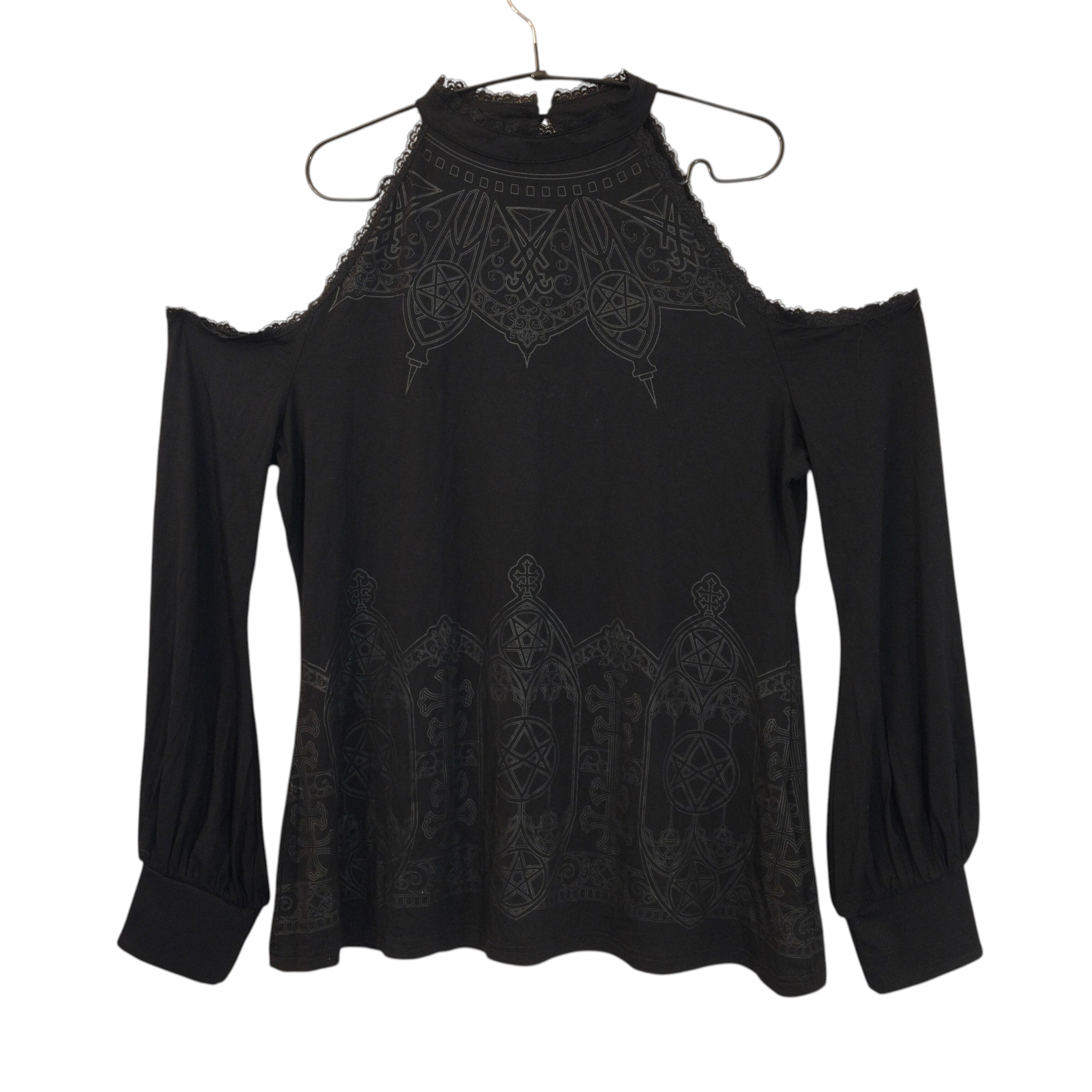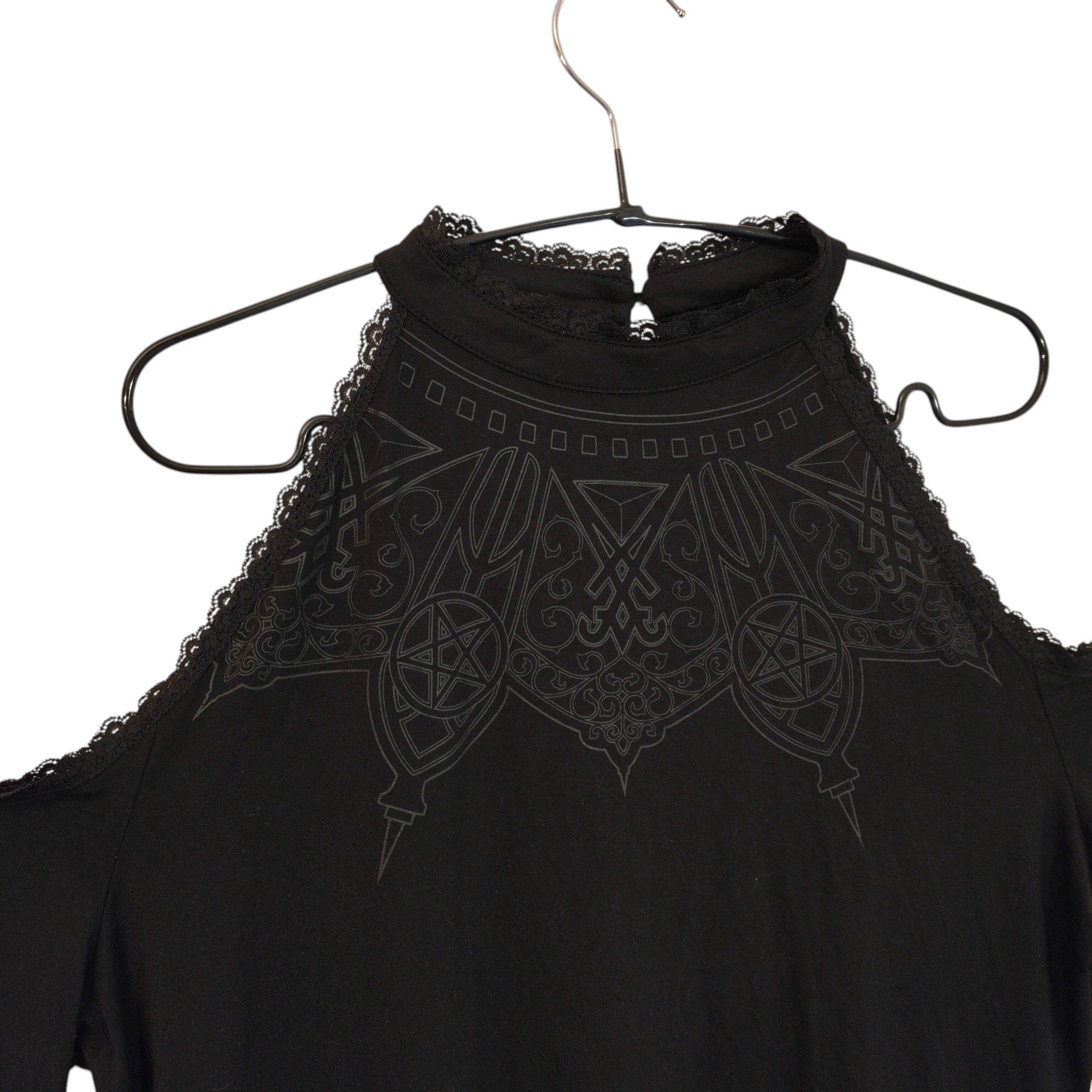 Killstar musta cold shoulder paita printein