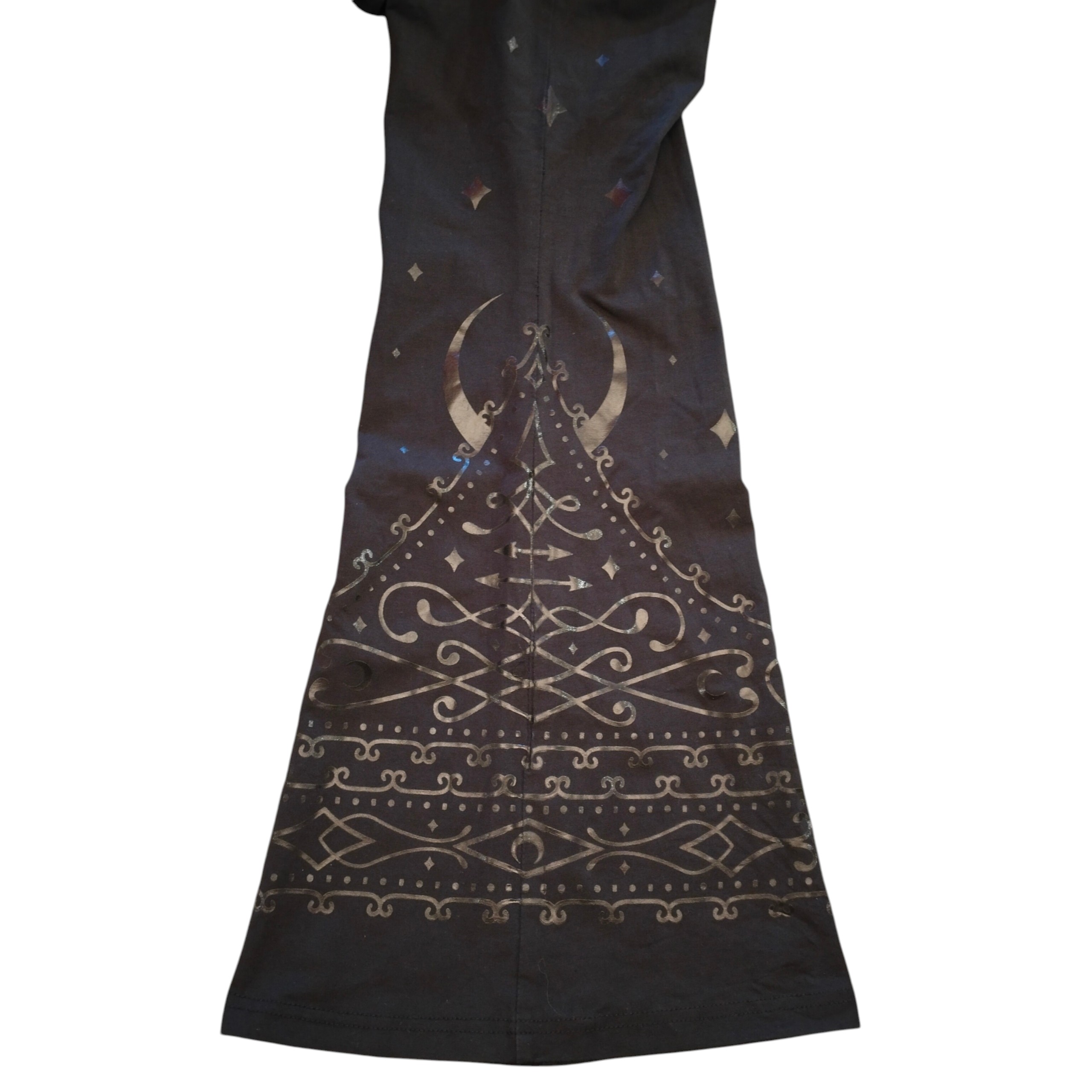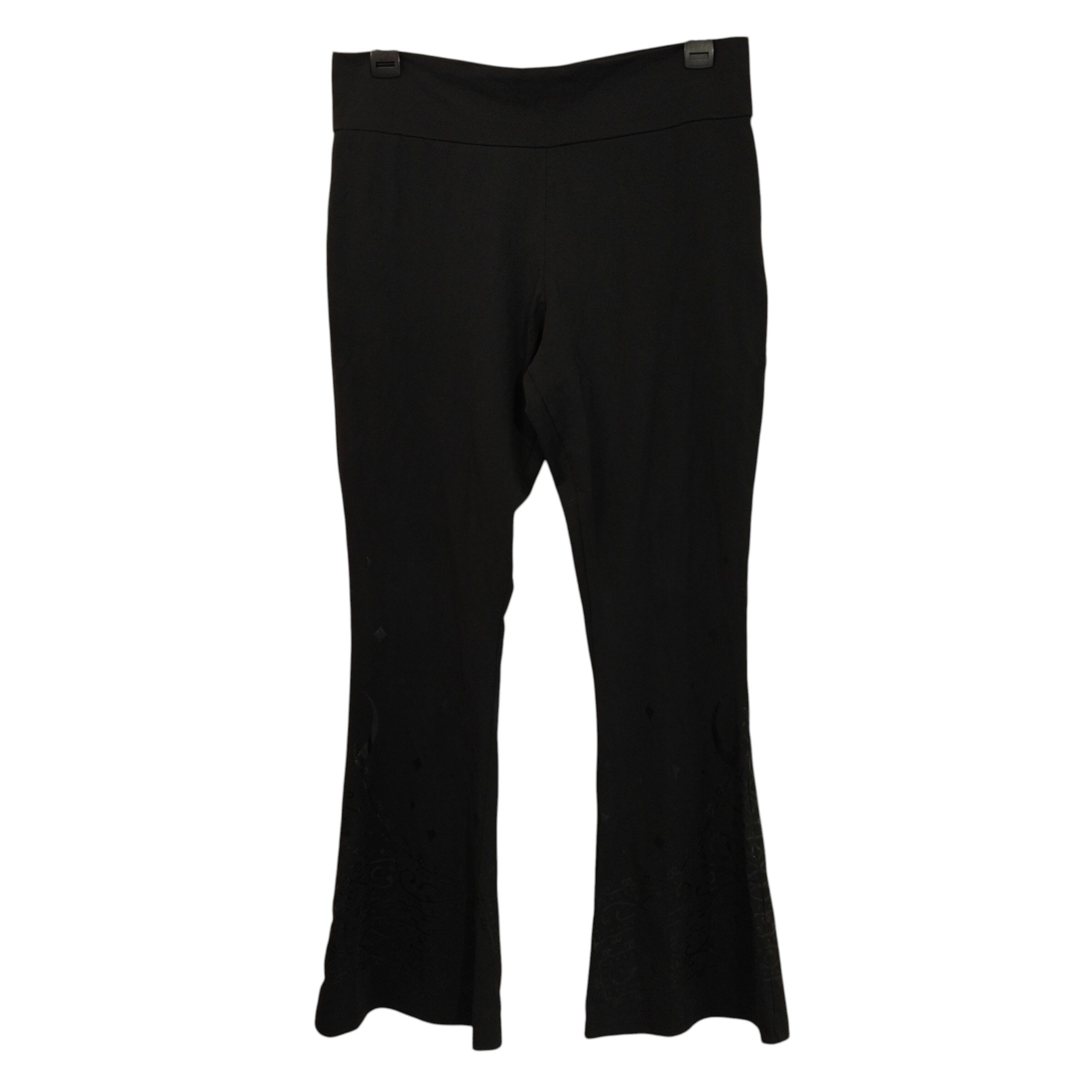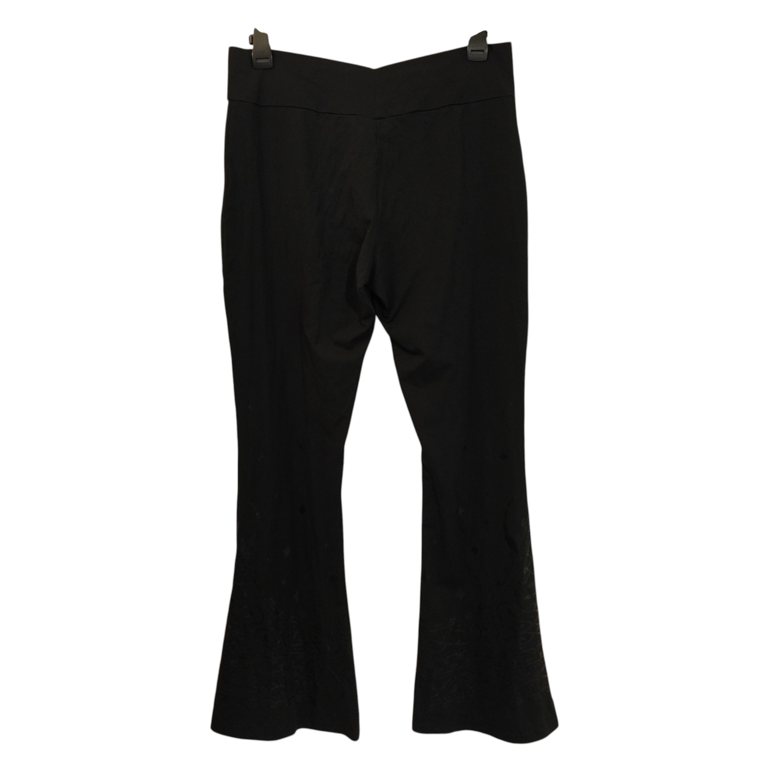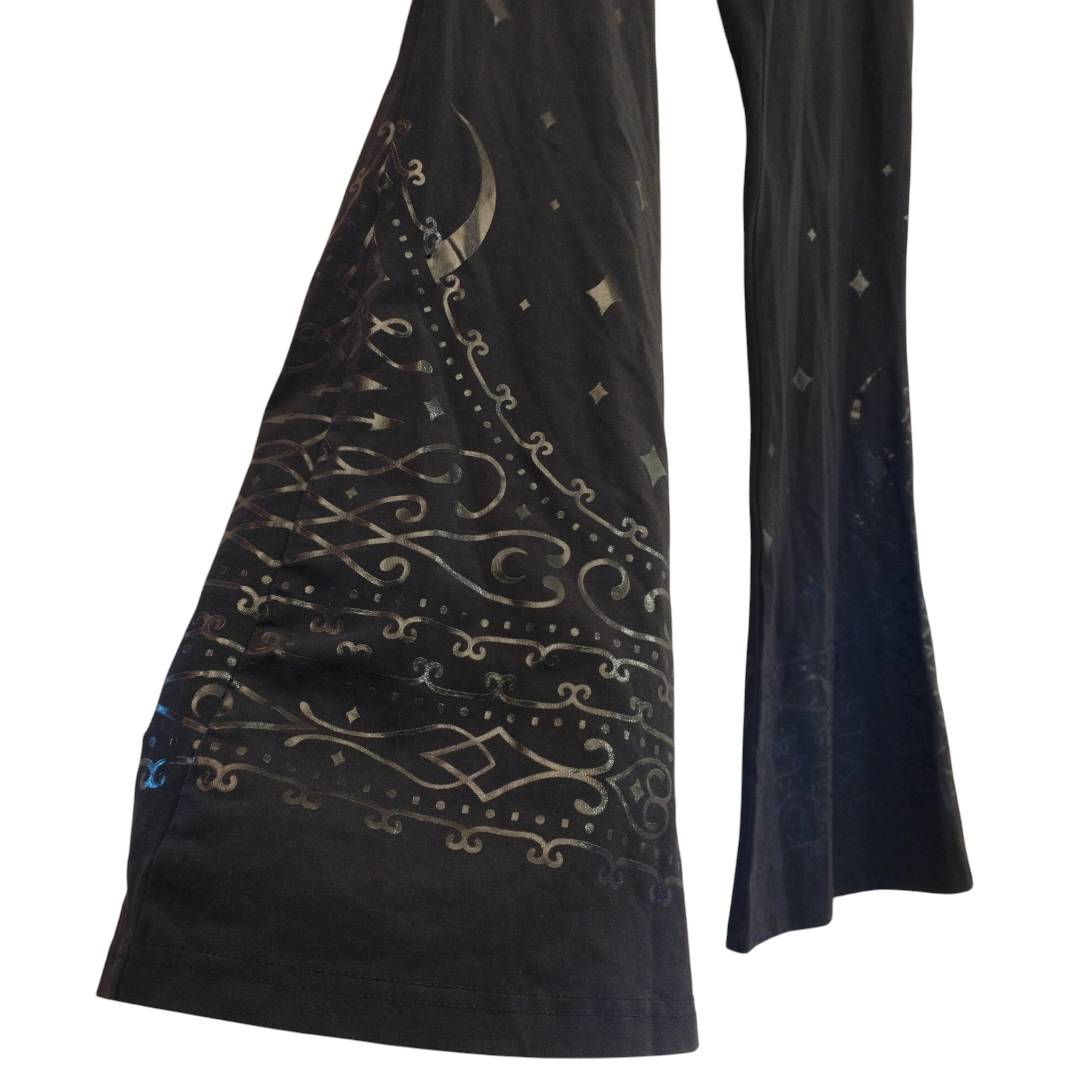 Levenevät lahkeet, joissa mustat printit edessä ja takana
