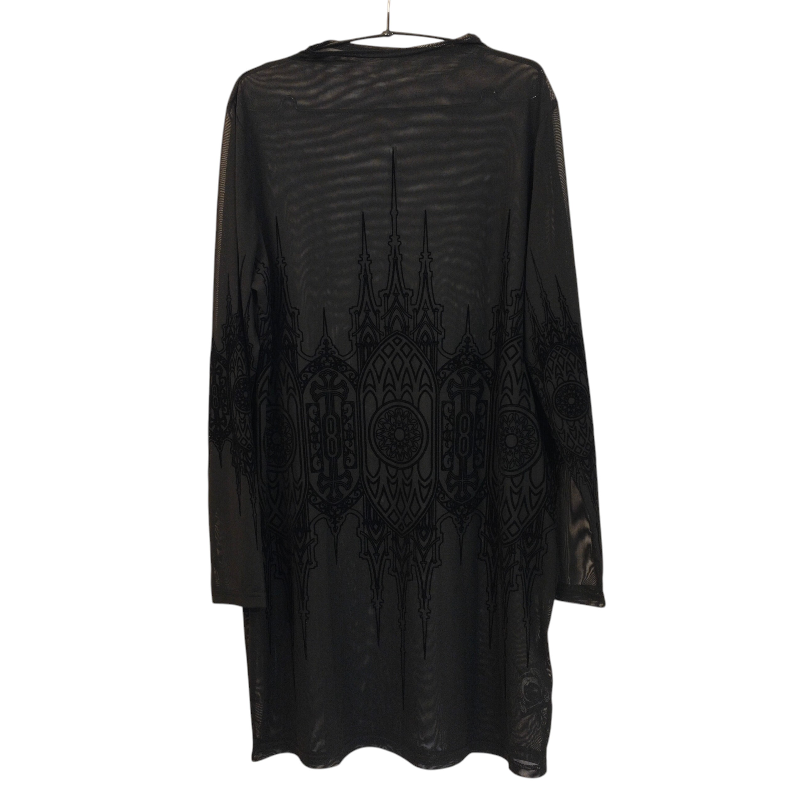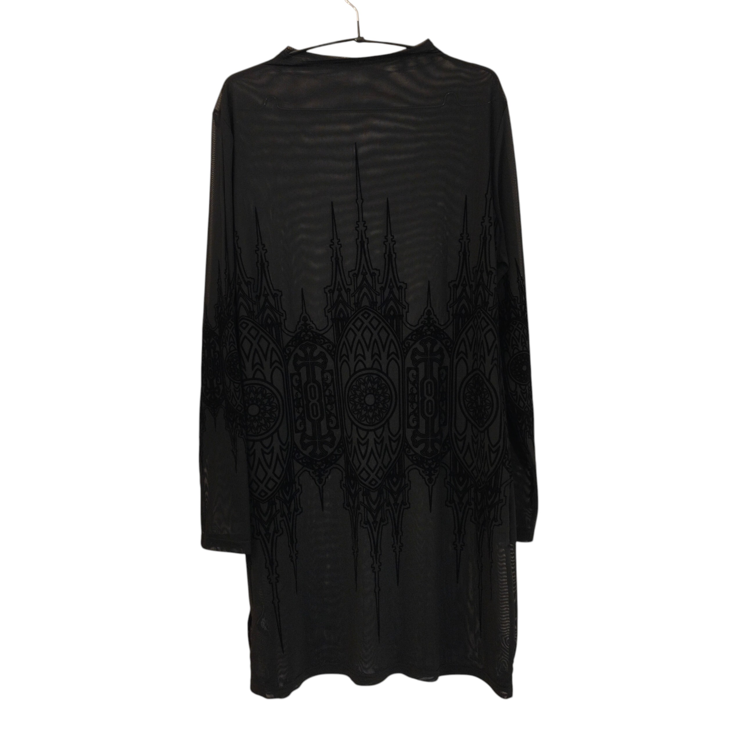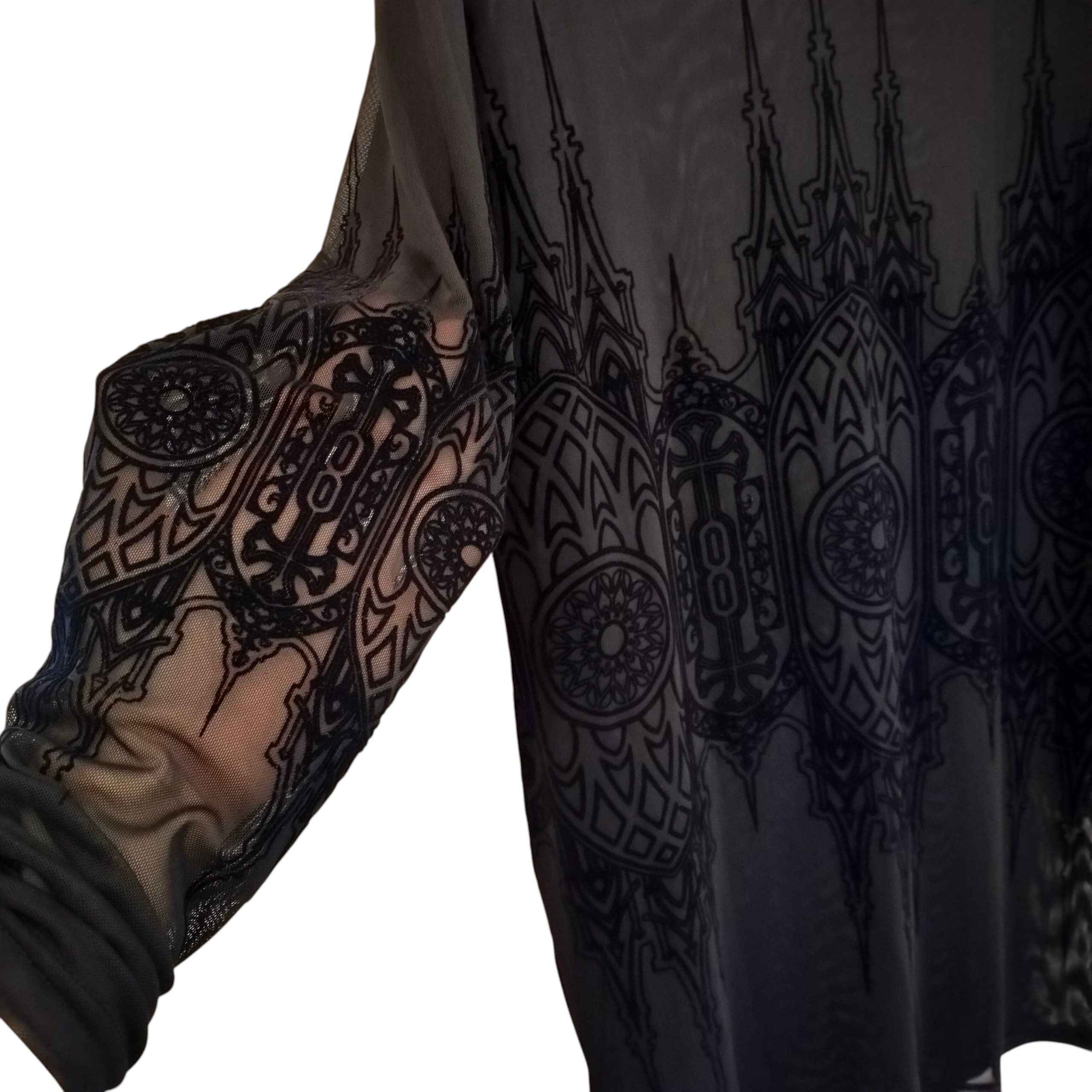 Edessä, takana ja hihoissa näyttävät mustat samettiset katedraali-kuvioinnit