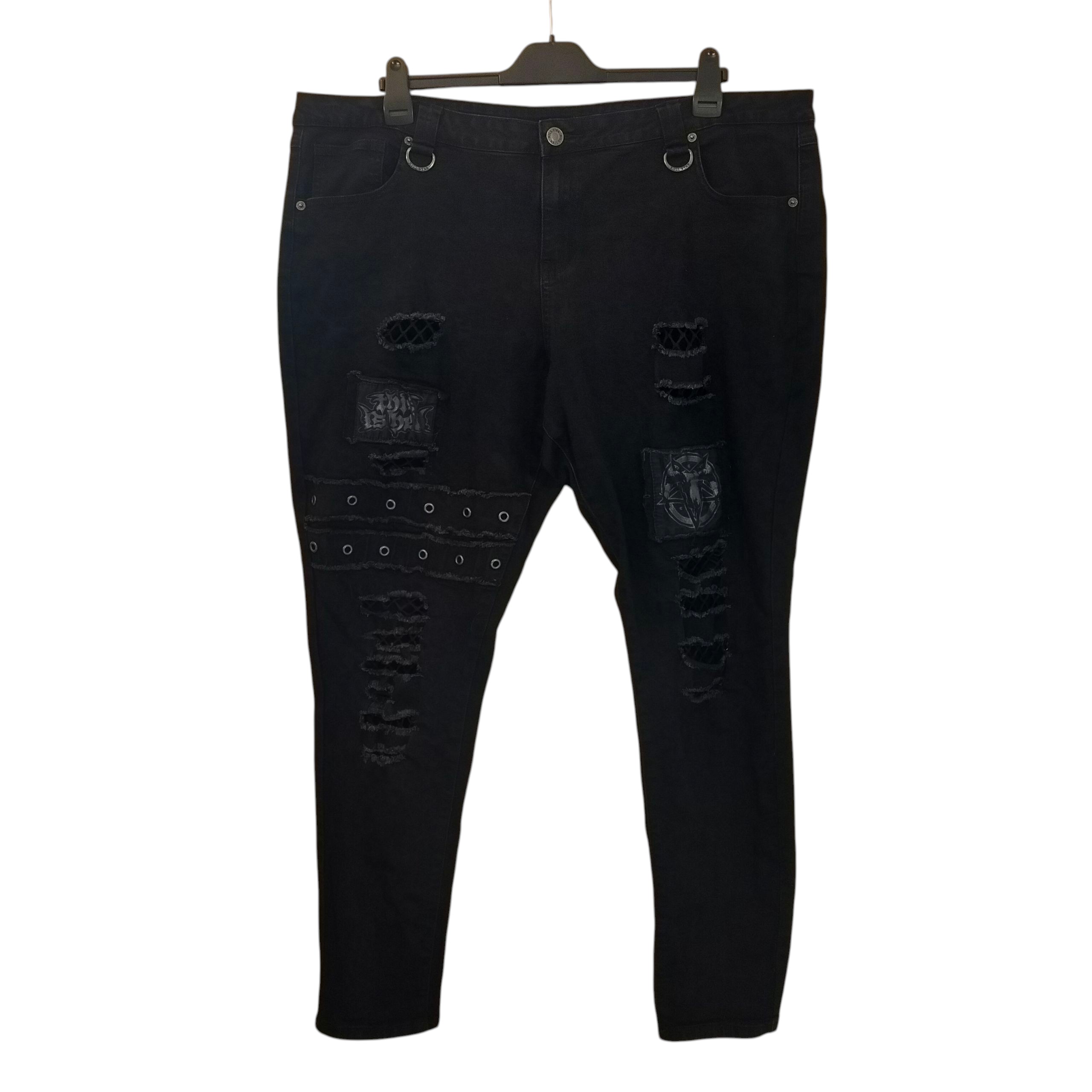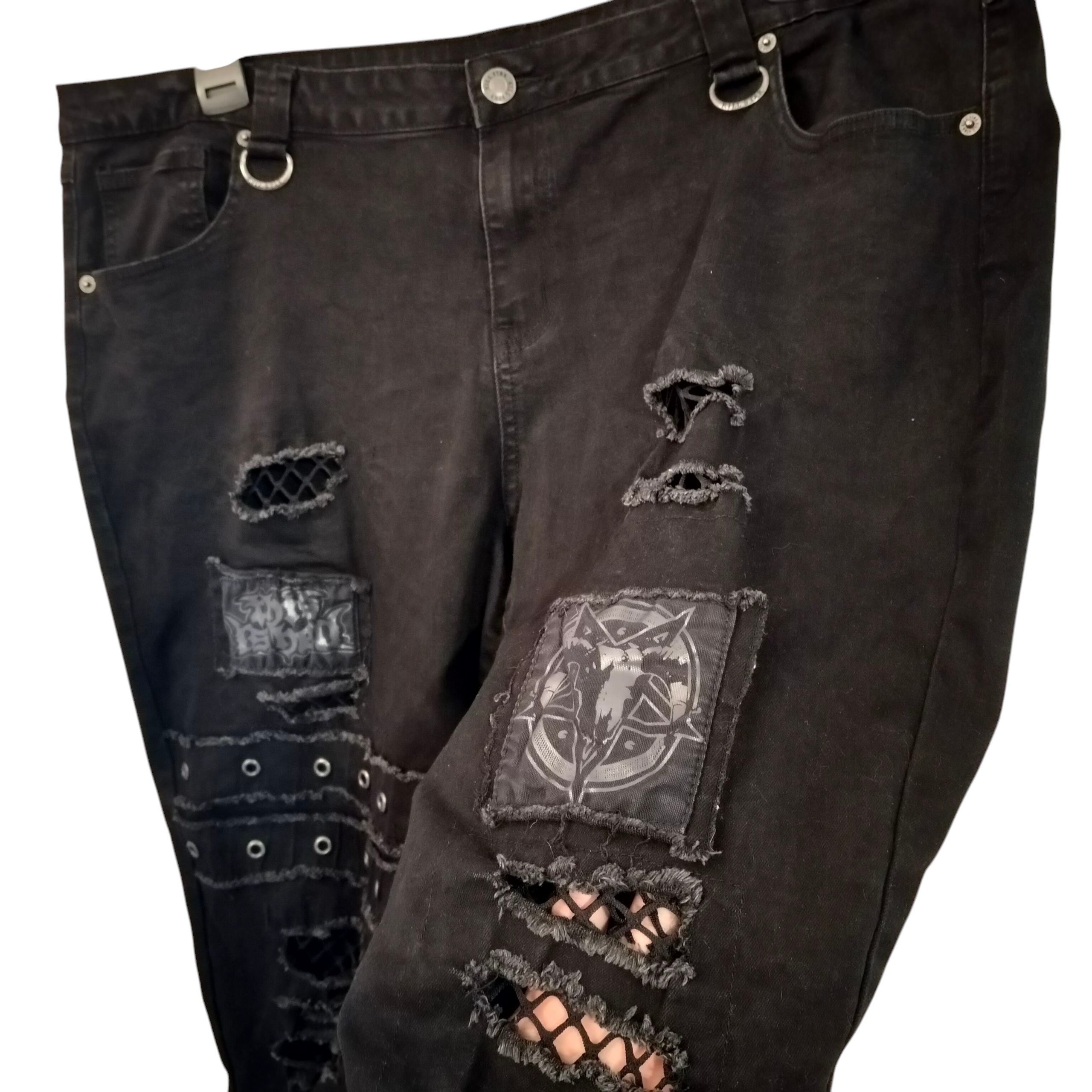 Lahkeissa edessä kulutuksia, joiden alla verkkokangas sekä koristesirkkoja ja patcheja