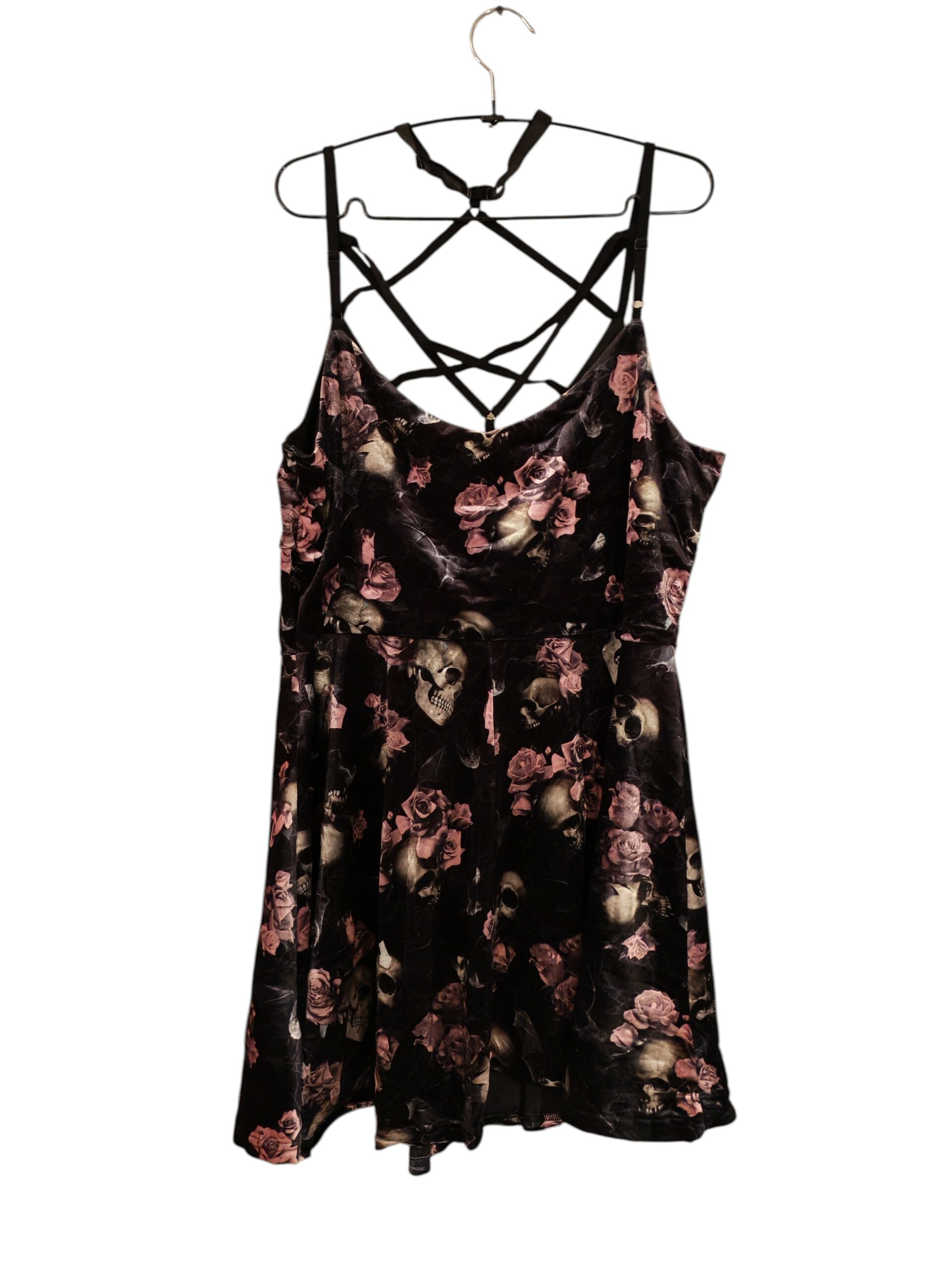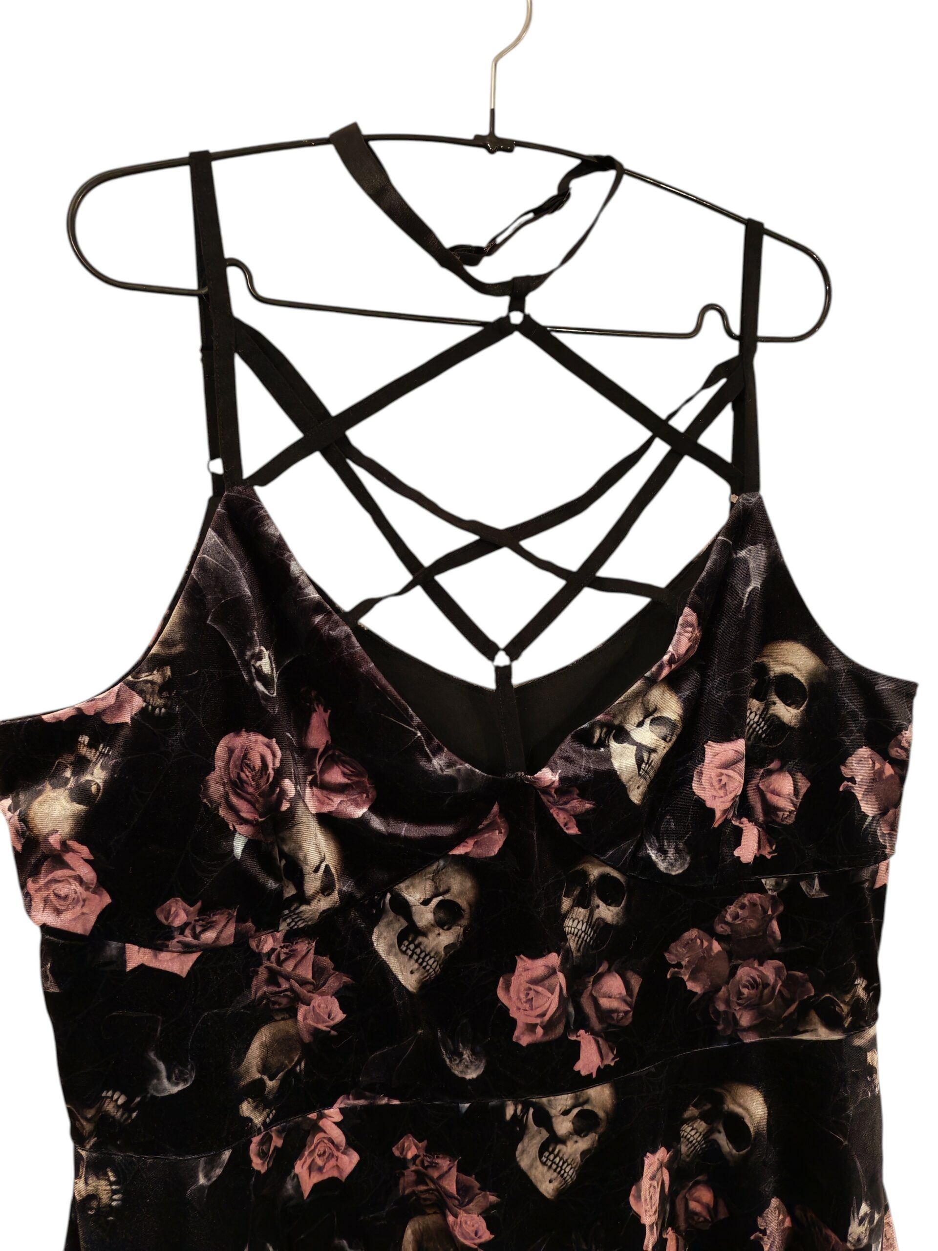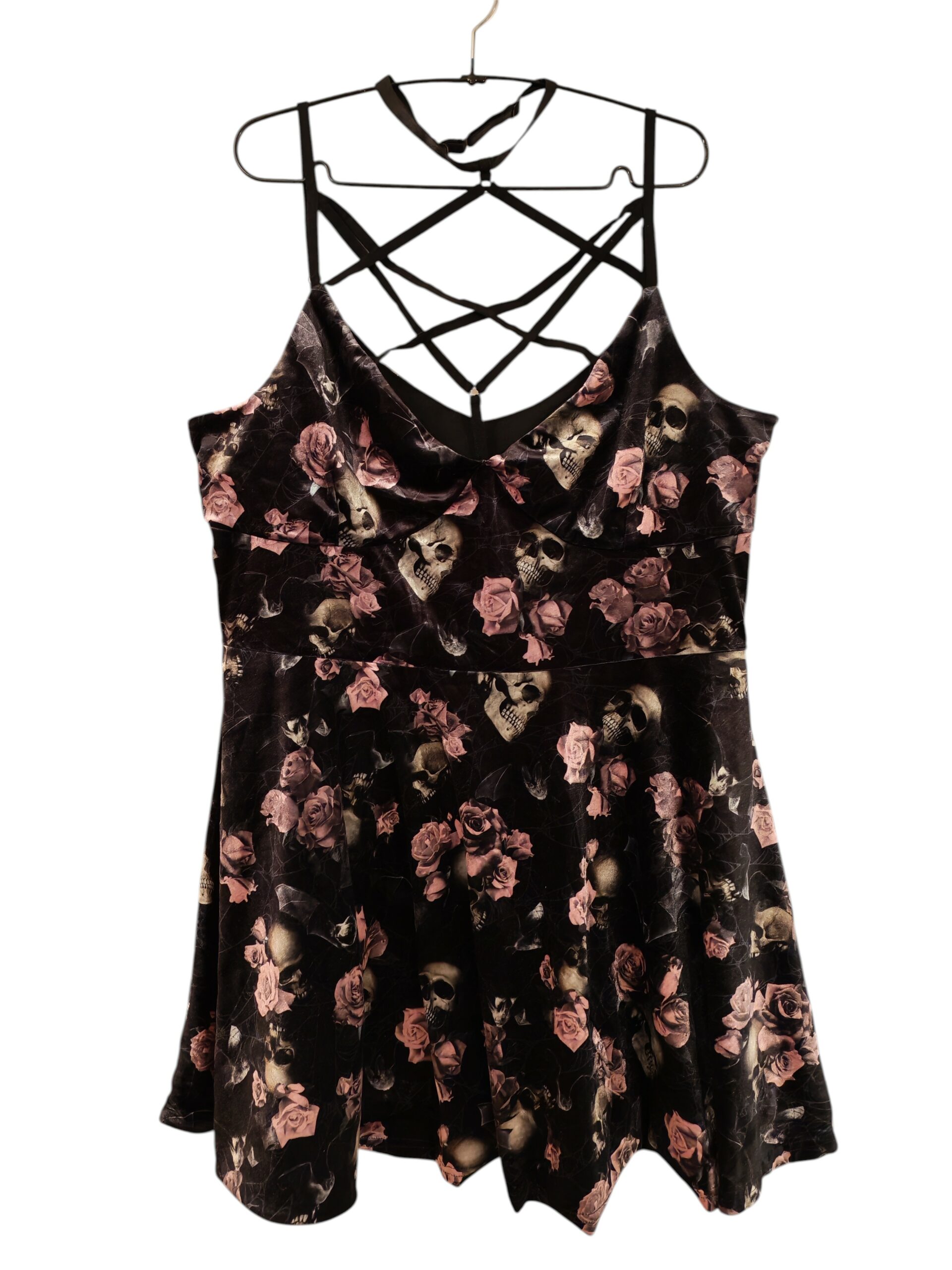 Killstar plyyshinen mekko ruusuin ja pääkalloin