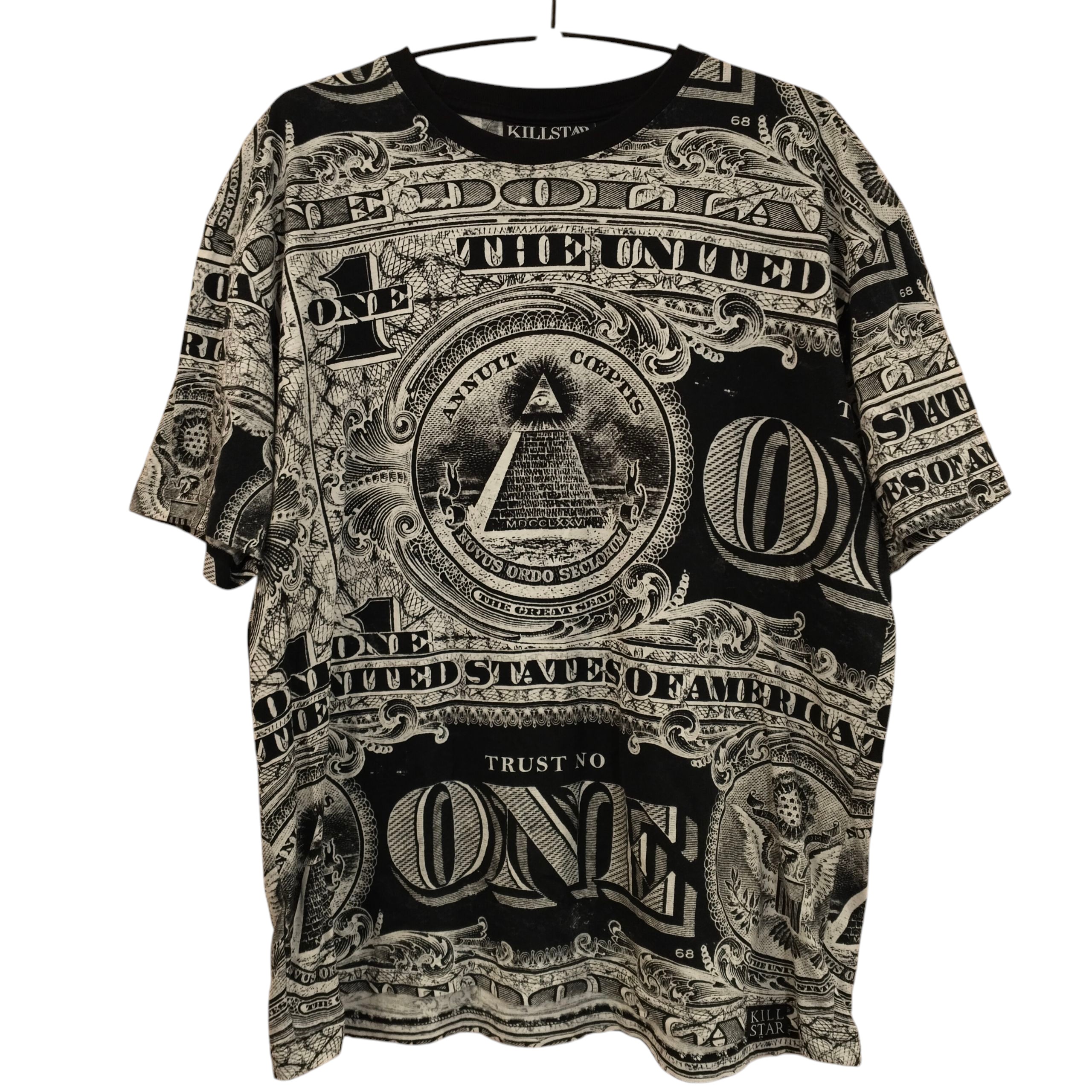 Killstar musta-valkoinen kuvioitu t-paita aikojen alusta kun materiaali oli vielä puuvilla, valmistus Turkissa ja kuviointi kankaassa eikä printtinä!