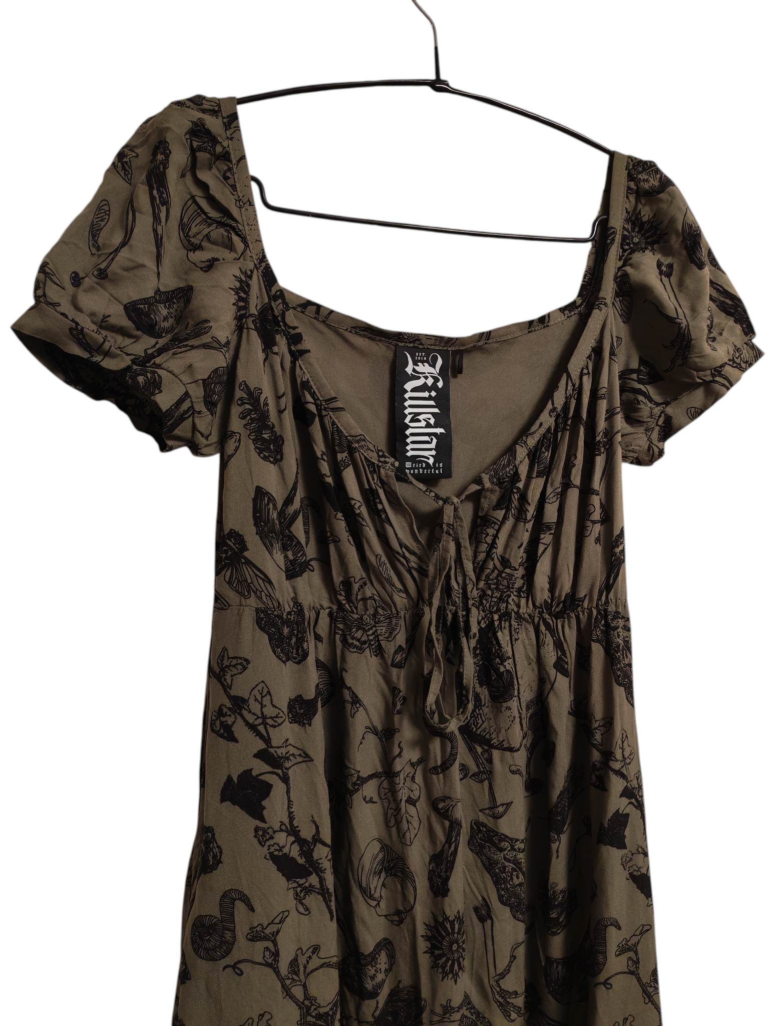Killstar vihreä maximekko mustilla kuvioinneilla