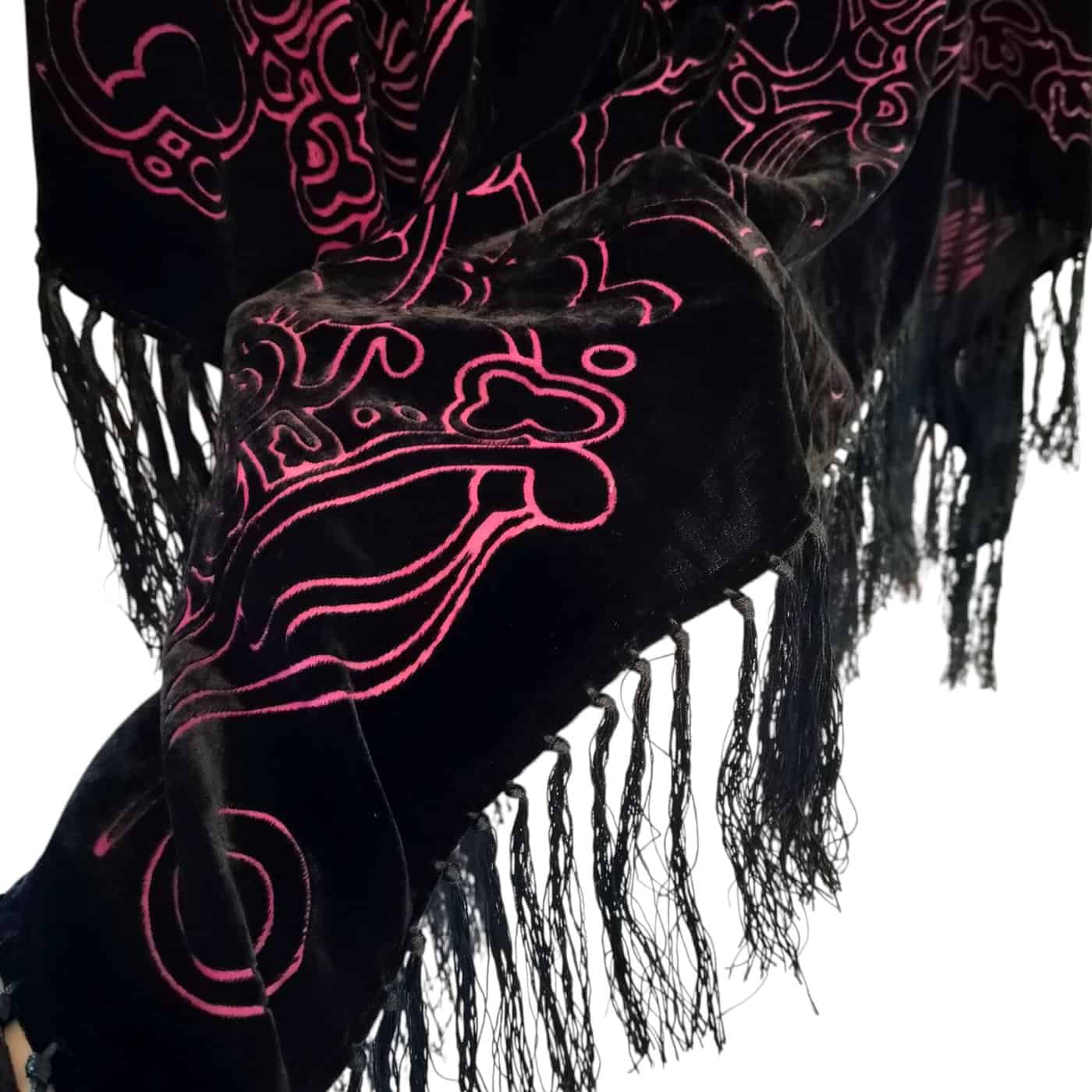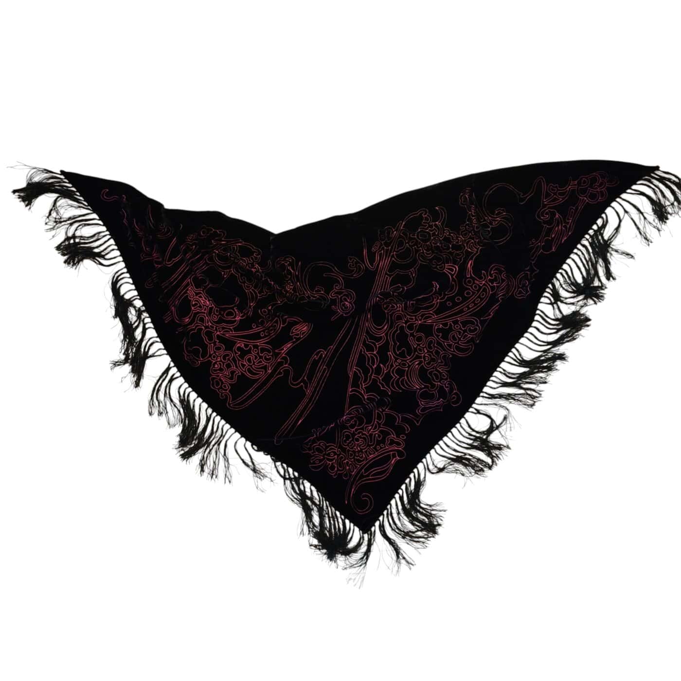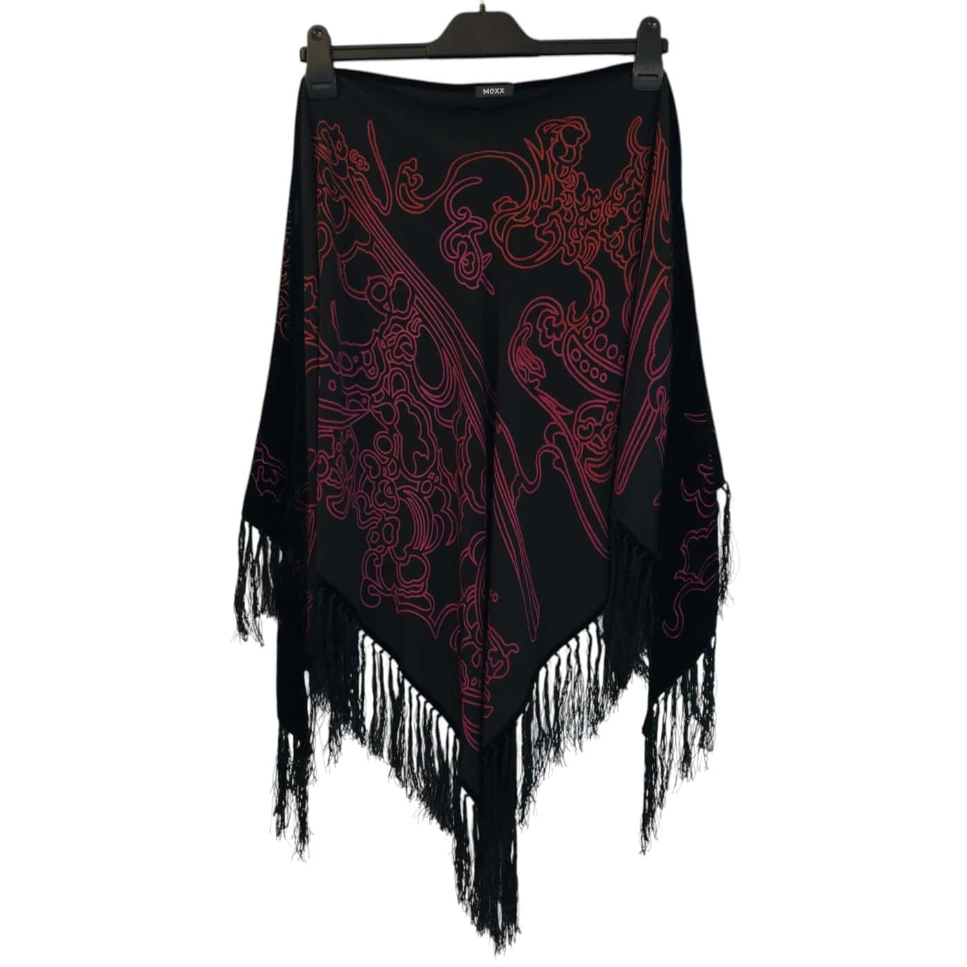 Mexx musta-pinkki plyyshimäinen kolmiohuivi hapsuin