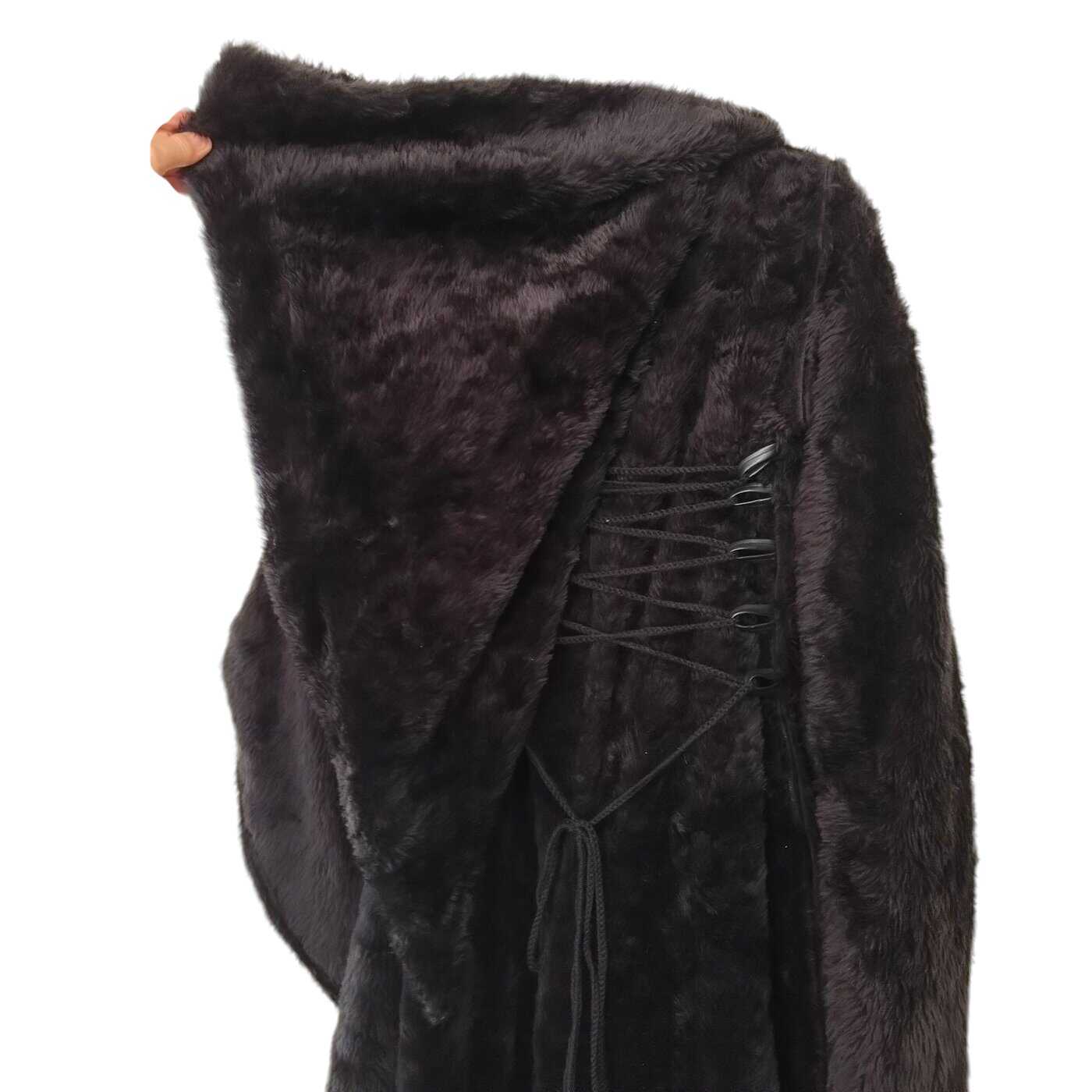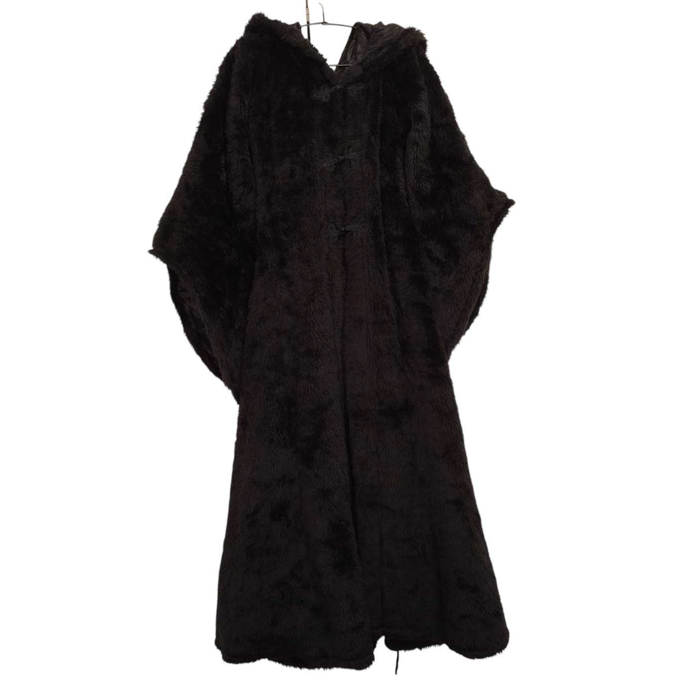 Tuotemerkki ei tiedossa, musta pitkä karvatakki hupulla