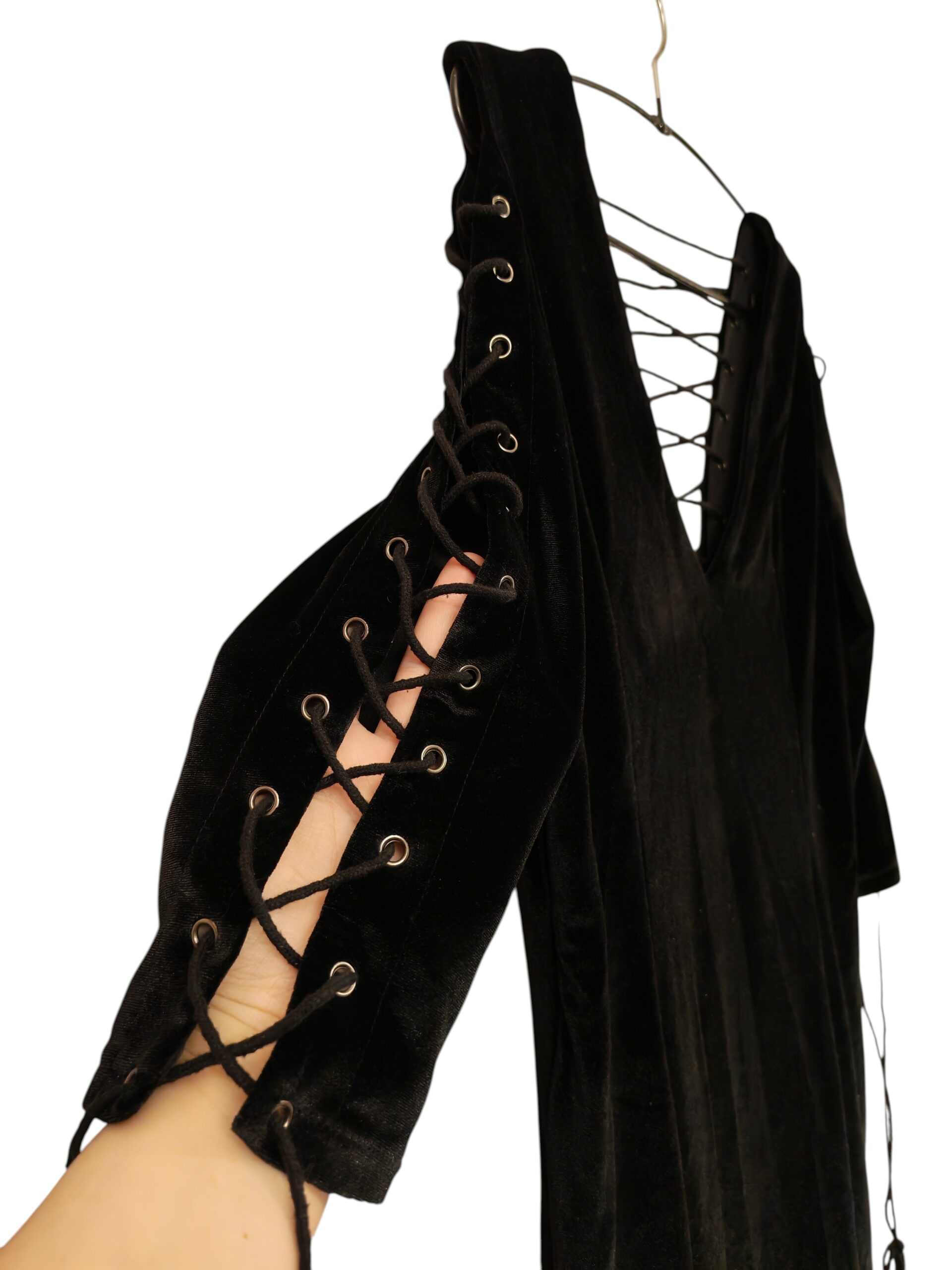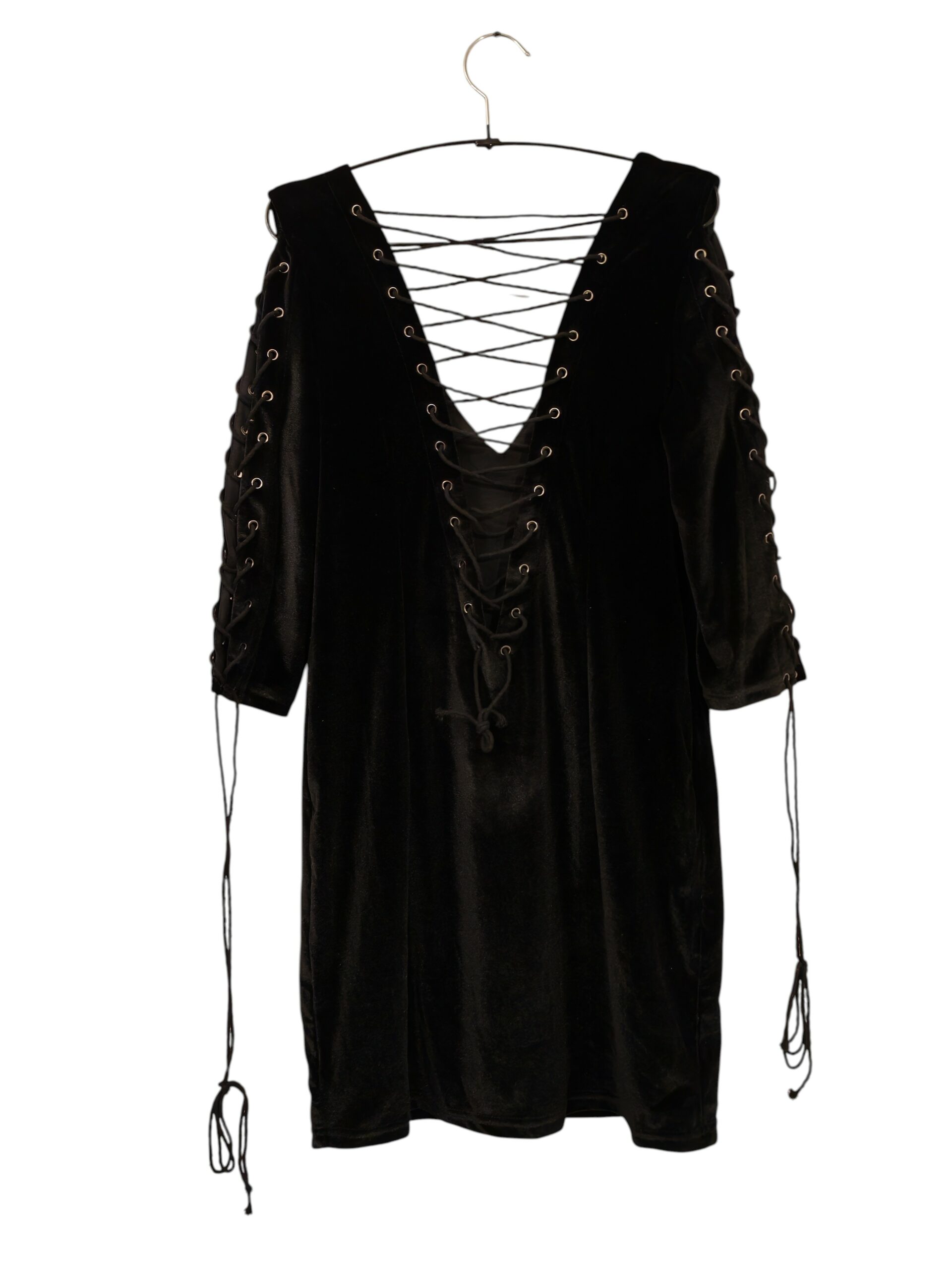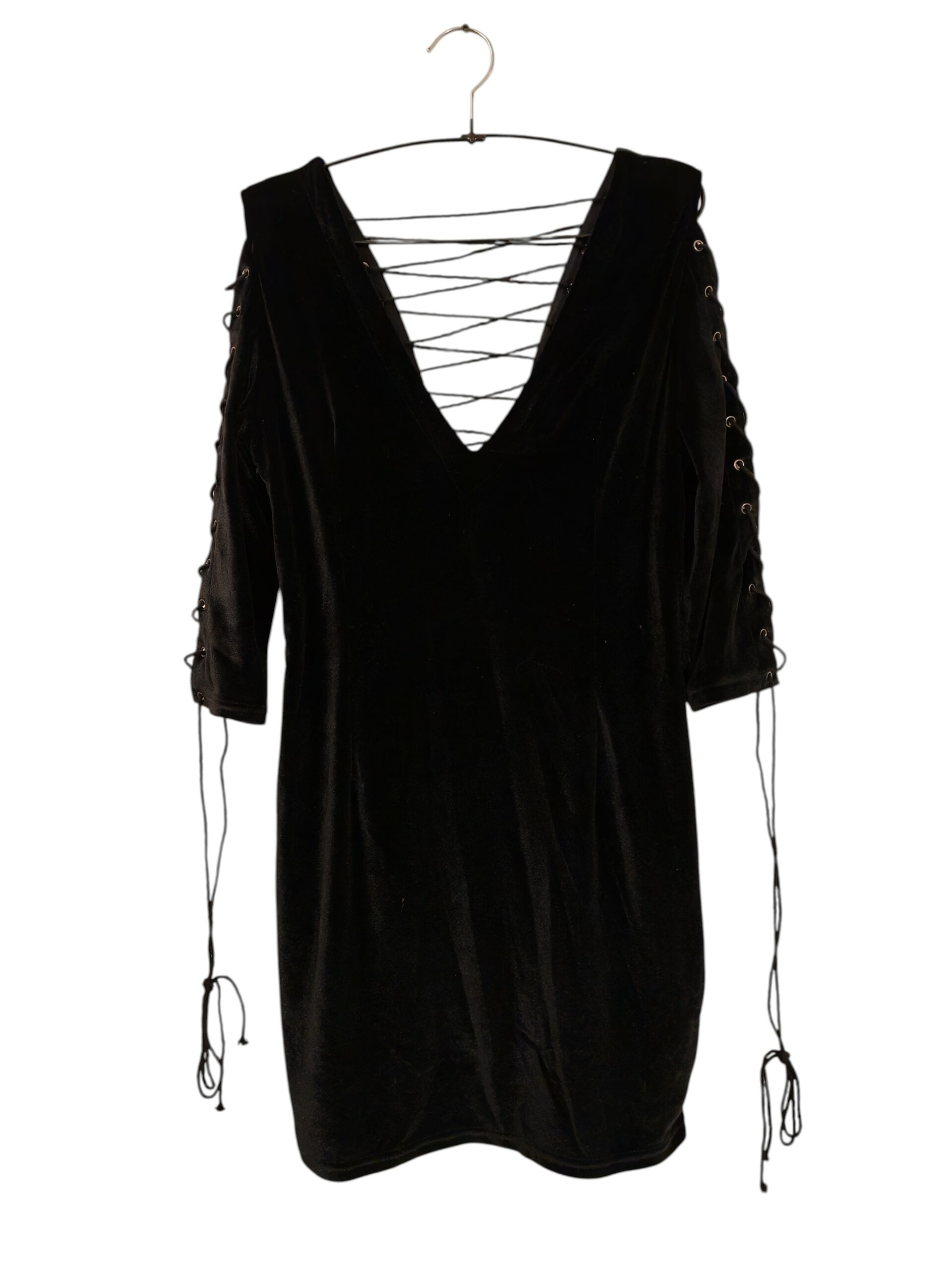 Tuotemerkki ei tiedossa, musta plyyshinen mekko