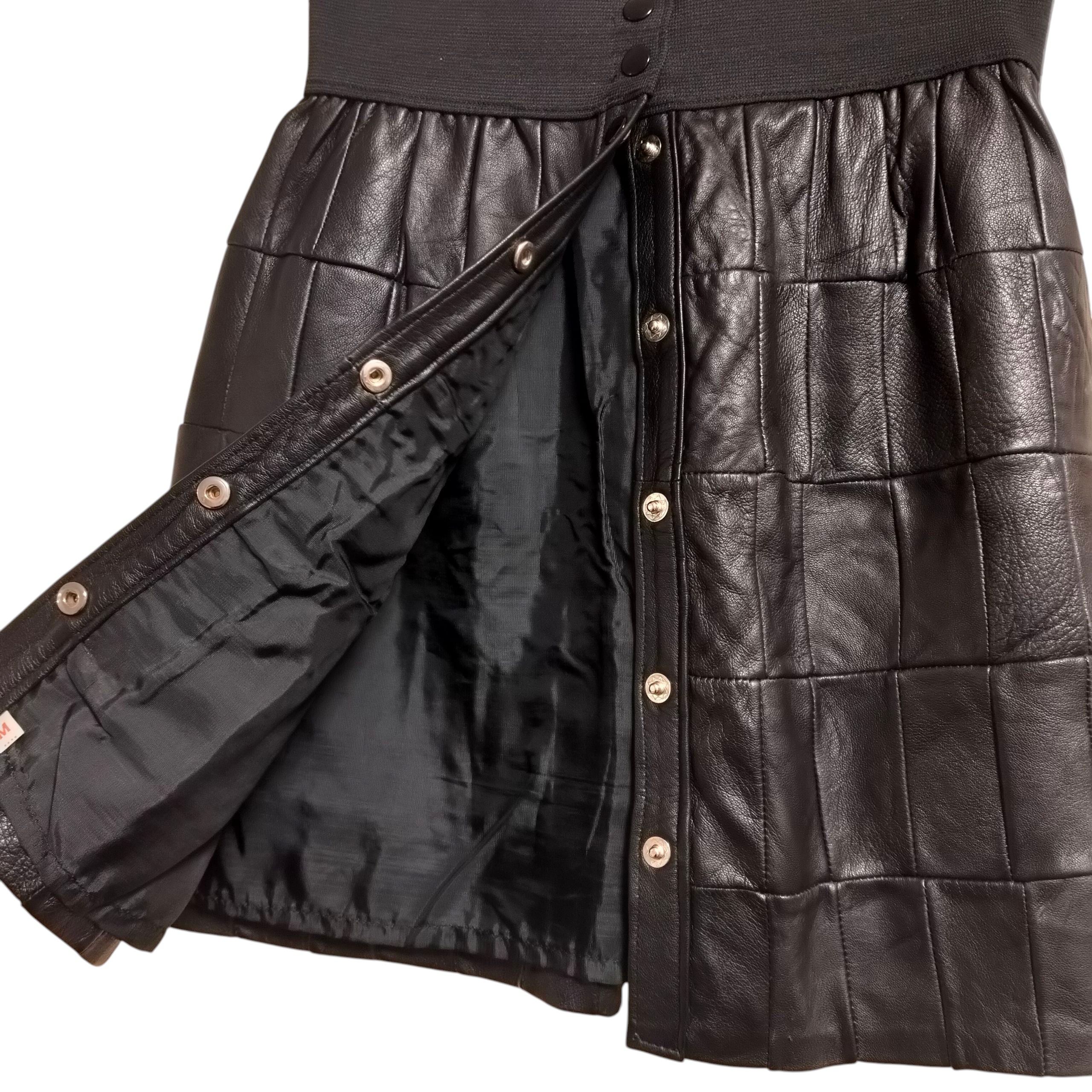 Tuotemerkki ei tiedossa, musta tilkuista ommeltu nahkahame