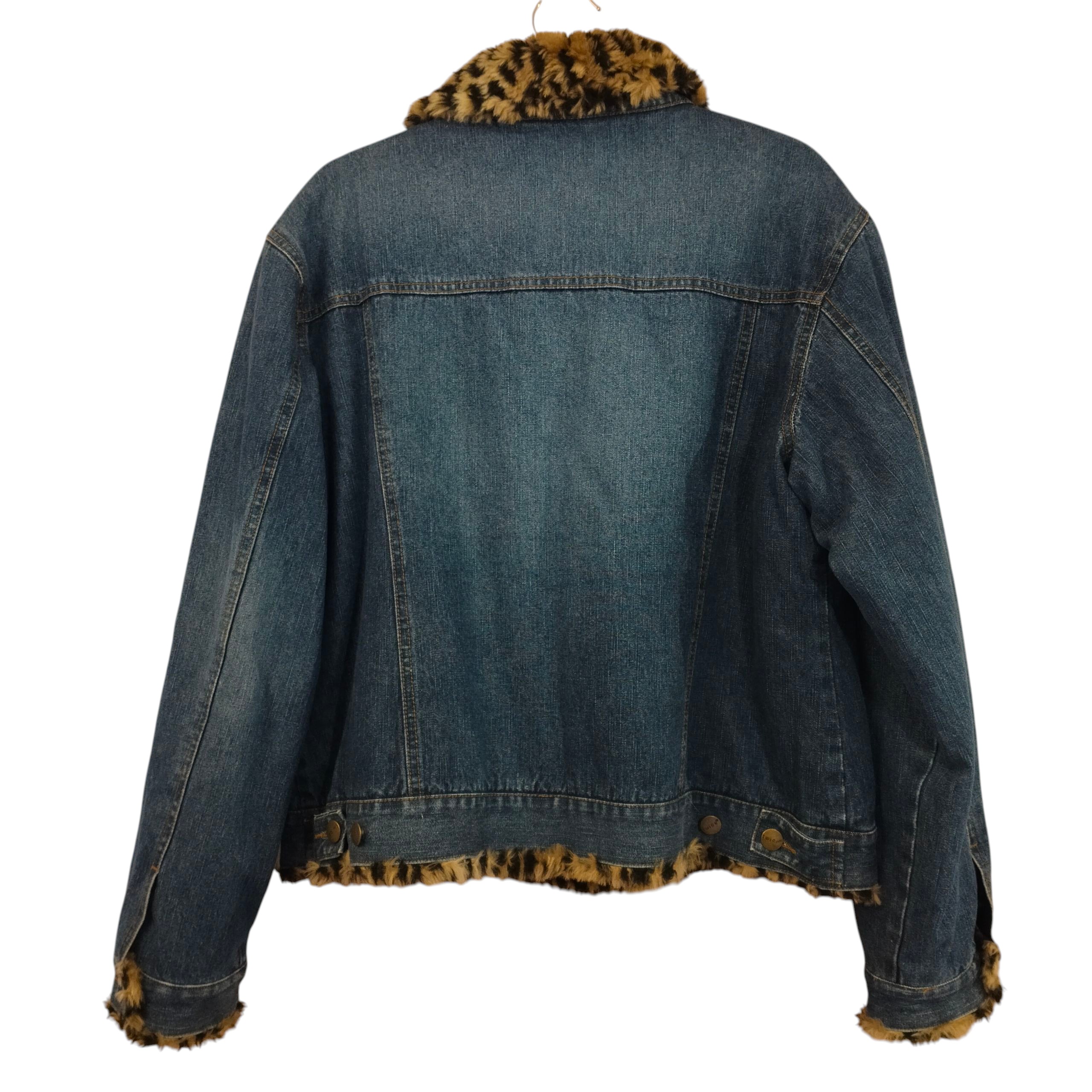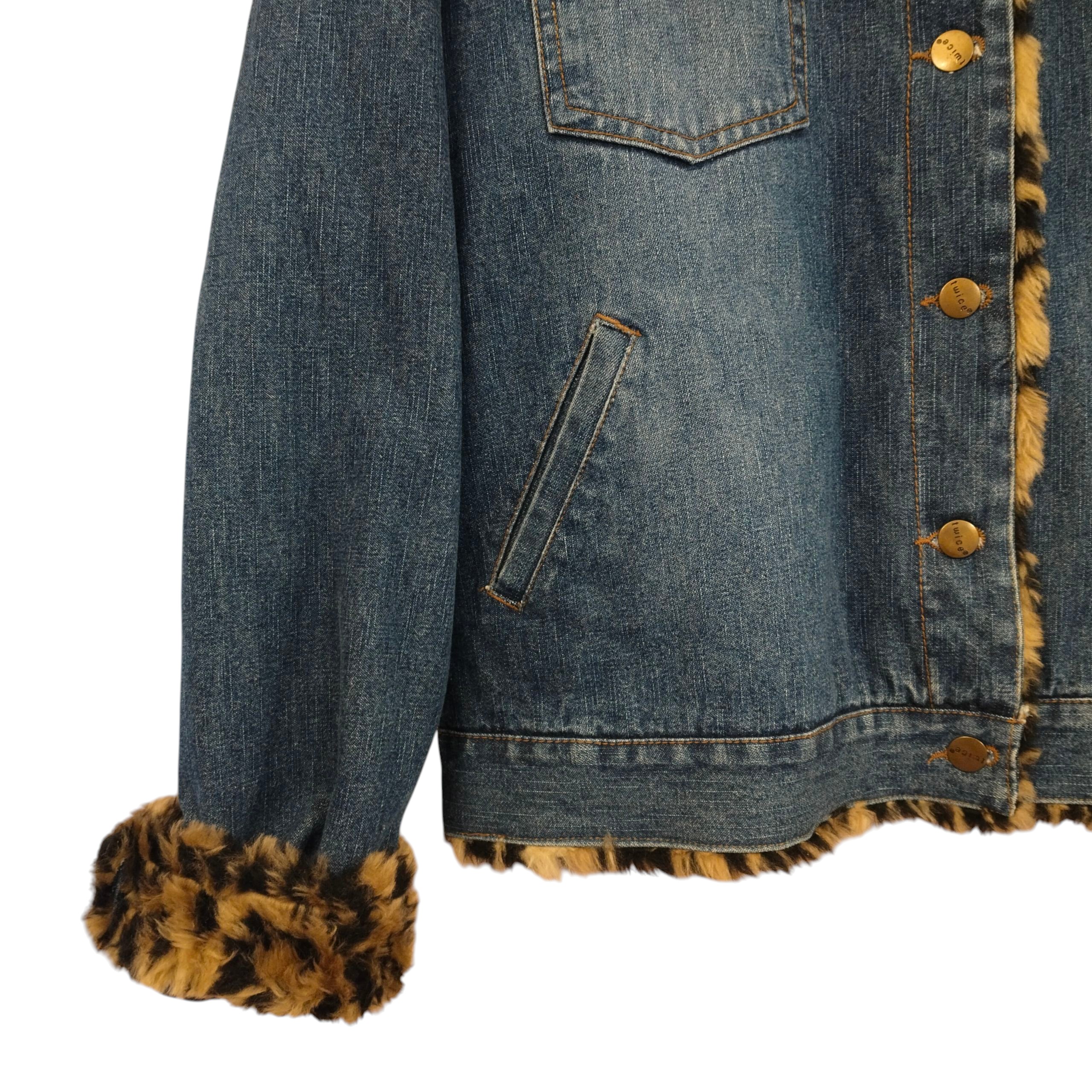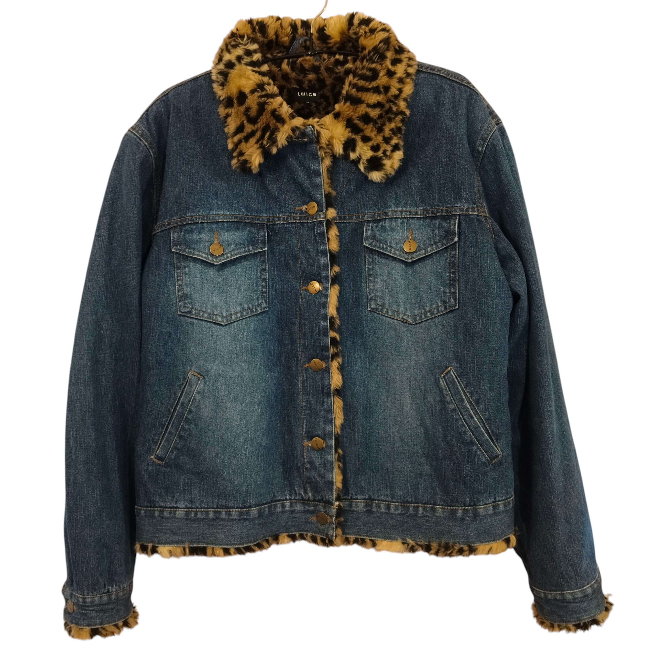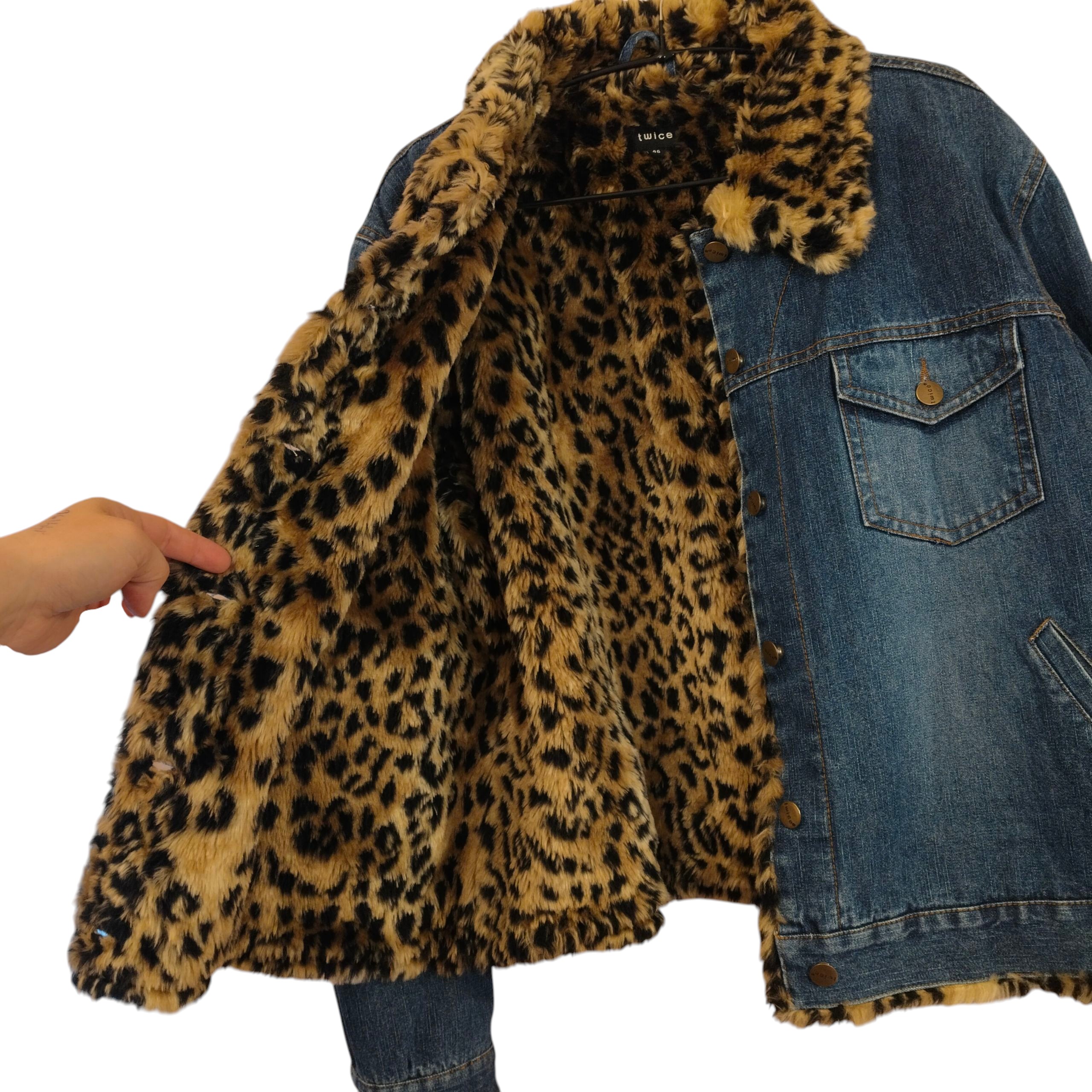 Twice by Anttila (ehkä jo vintage-ikäinen) sininen farkkutakki leopardikuosisella vuorella