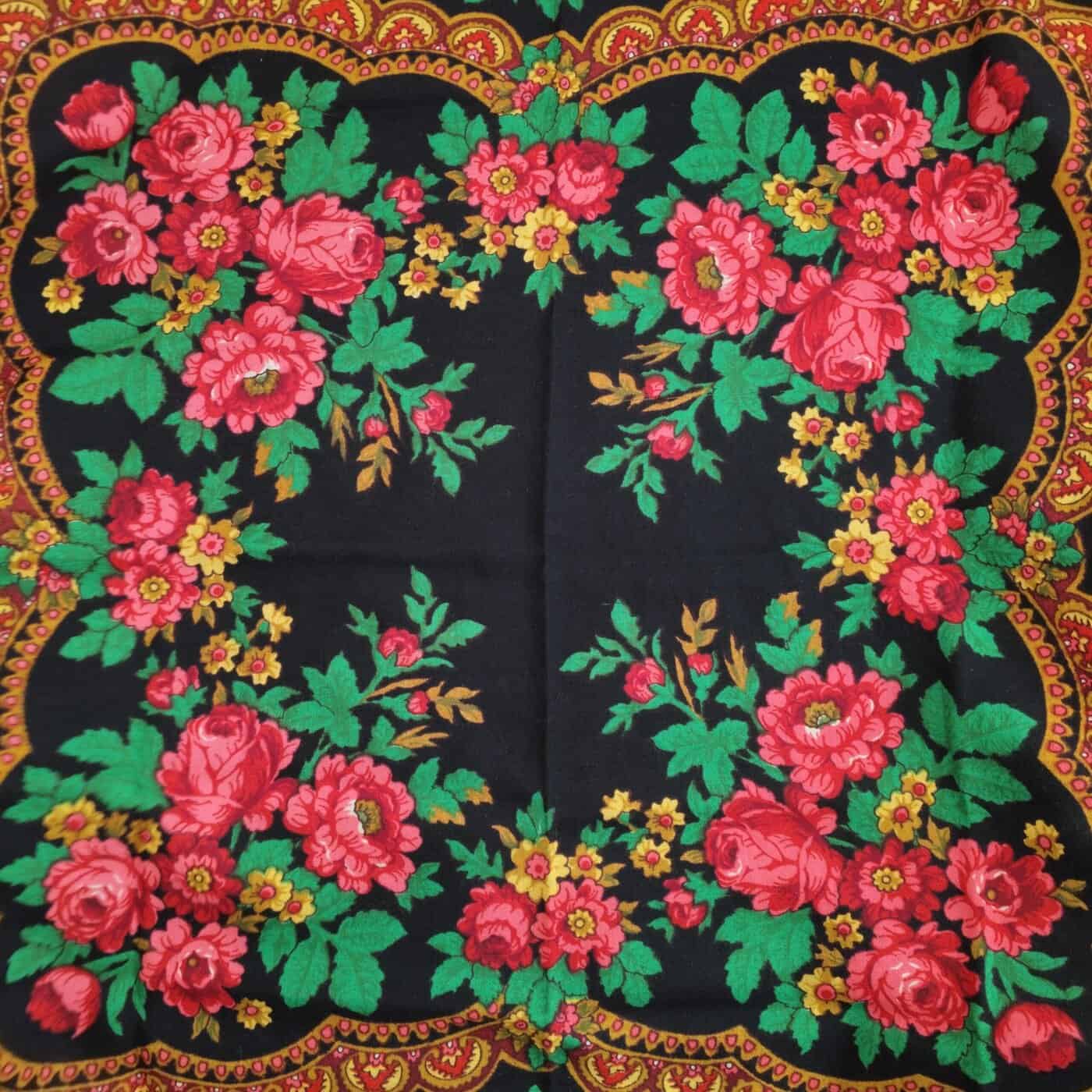Musta Maatuska kukkahuivi, kevyt ja lämmmin